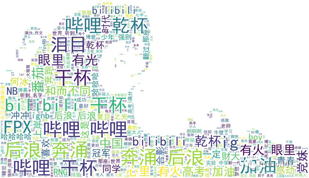 现在我们已经获取了弹幕数据,接下来再对数据做个词云展示,实现代码如下所示: